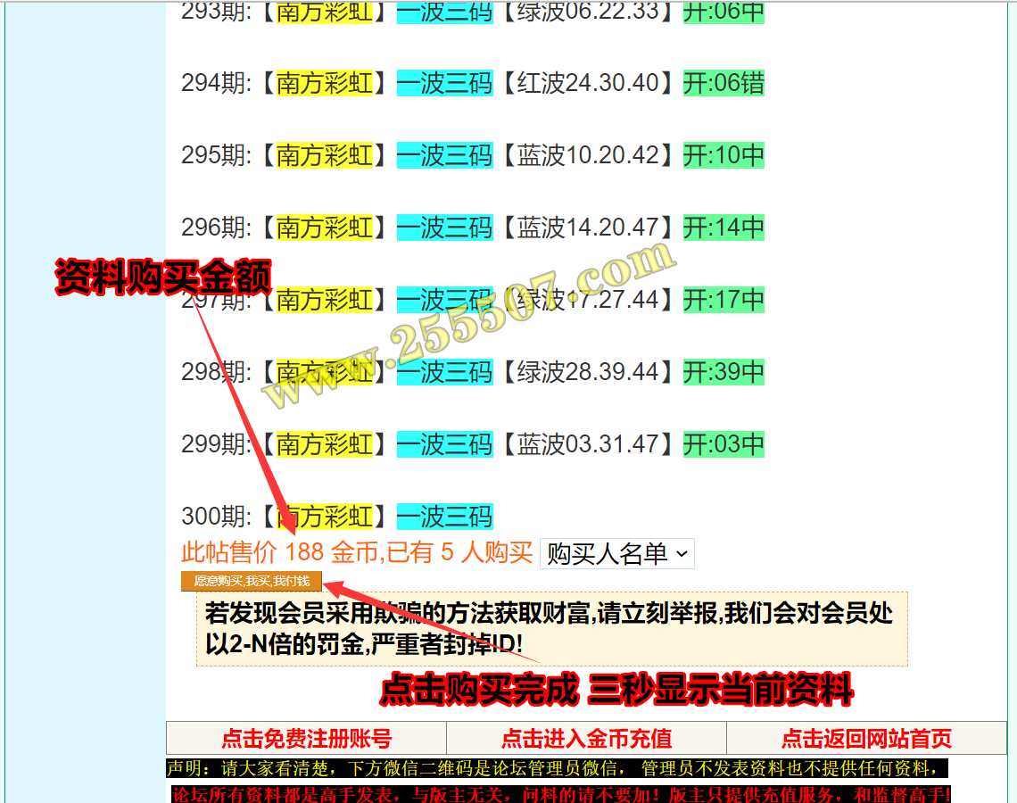 所有高手出售的资料都是单期,每期都需要购买才能查看,购买自由,对错不补,也不返还金币。